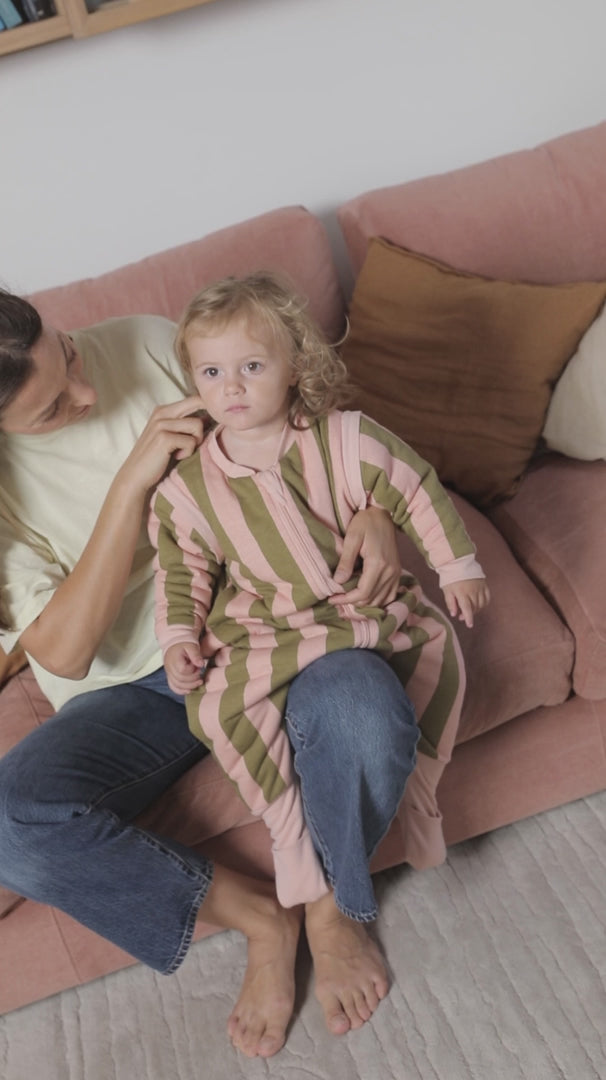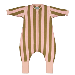 Molis&Co pižama - miegmaišis su rankovėmis, kojytėmis ir atverčiamomis kojinėmis TOG 2.5 Khaki & Rose Stripes