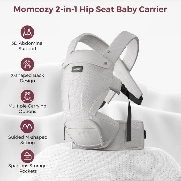 Momcozy kūdikių nešioklė Move2Fit 2in1 su klubų sėdyne, su tinkleliu, pilka