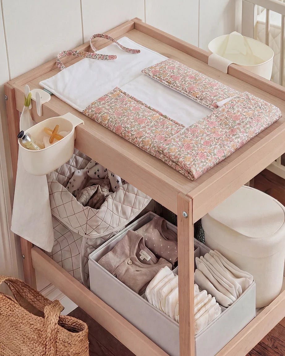See mähkimisalus on kerge ja kompaktne, sellel on käepide, nii et saate selle mugavalt kätte võtta ja kaasas kanda. Materjali pehme tekstuur ja padja suurus sobivad suurepäraselt beebi mähkmete vahetamiseks reisil või linnas. Padja on veekindel ja sellel on lahtikäivad taskud, kuhu saab mugavalt hoida mähkmeid ja niiskeid salvrätikuid.