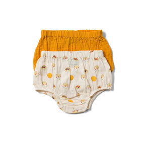Skaisti ziedoši šorti - blūmētāji! Šo lielisko stilīgo apģērba gabalu var valkāt virs autiņbiksītēm, bodijiem, zem kleitām vai vienkārši ar t-kreklu karstās vasaras dienās. Šorti ir brīvi pieguļoši un izgatavoti no grezni mīksta organiskā muslīna, padarot tos patiešām ērti valkājami, patīkami pieskarties un patīkami skatīties mazajam, kas tos valkā.