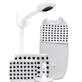- Bezvadu elpošanas uzraudzības sistēma: viedais guļammaiss (no dzimšanas līdz 3 mēnešiem), 2 elpošanas lentes (maza - piemērota no dzimšanas līdz 3 mēnešiem un liela no 3 līdz 24 mēnešiem, vēlāk var iegādāties viedo Nanit pidžamu)