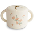 Mushie uzkodu traukam ir divi mazi rokturi, lai to varētu viegli satvert ar mazām rokām. Mīkstā atvēršana nodrošina, ka mazuļa rokas var viegli ieslīdēt traukā un izkļūt no tā, vienlaikus droši turot ēdienu. Ejot vai enerģiski kratot, ēdiens neizkrīt no krūzes.