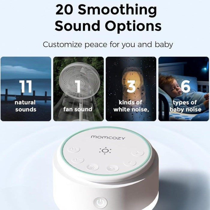 Momcozy baltojo triukšmo aparatas – lengvas, kompaktiškas ir mobilus įrenginys, padedantis sukurti ramią, jaukią miego aplinką namuose ir kelionėse. Integruota pakraunama baterija suteikia laisvę naudoti be laidų, o 20 aukštos kokybės garso variantų padeda pasirinkti būtent tai, kas labiausiai ramina jūsų mažylį (ir jus).